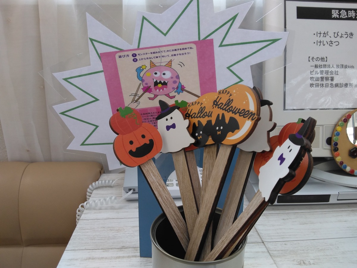 飾りつけや、オバケのおもちゃも楽しんでくれています!!