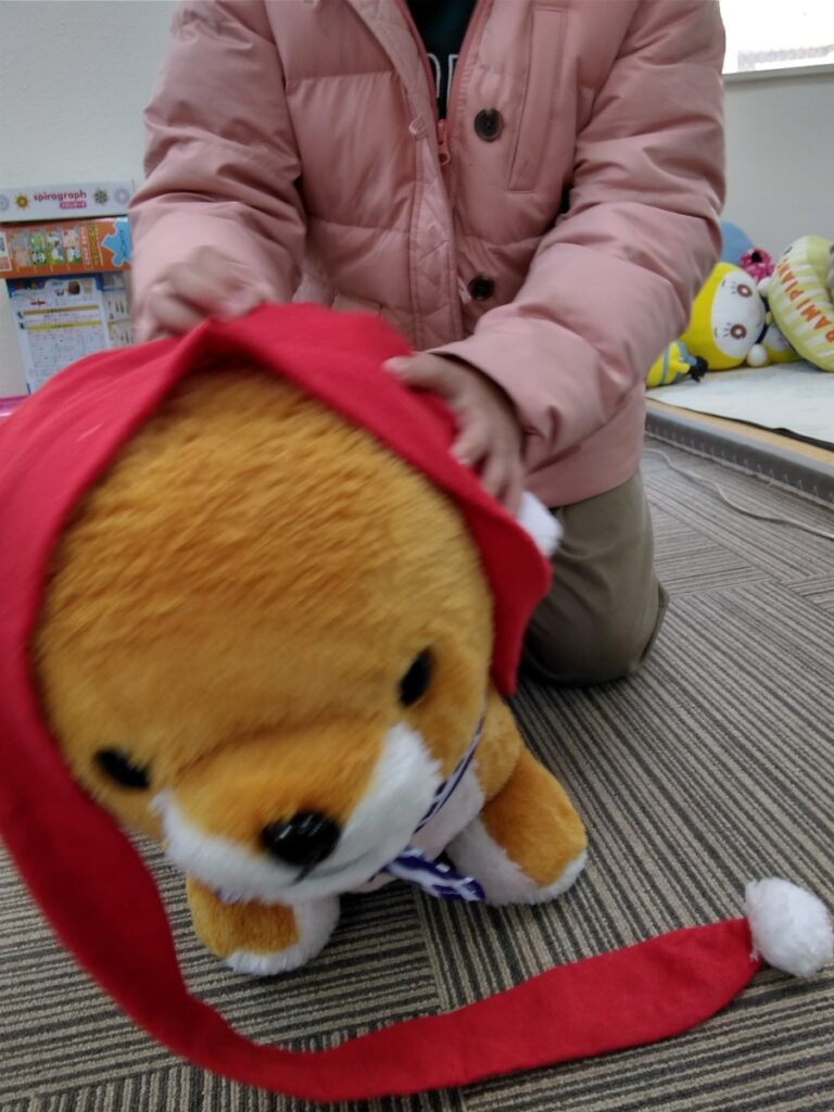 食べたら、サンタさんのサイコロも膨らませたので、遊びましょう!!